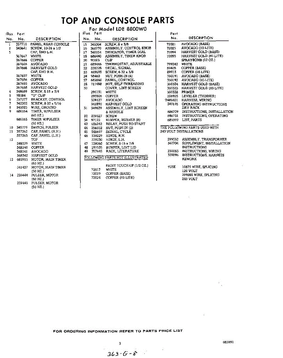 Parts for Whirlpool LDE8800W0: 03 - Lit / Optional Parts