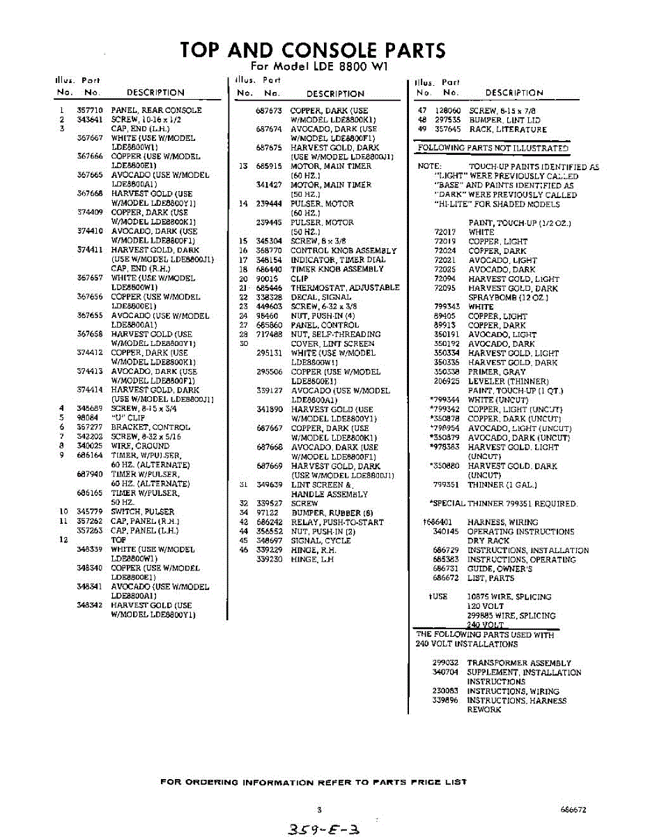 Parts for Whirlpool LDE8800W1: 03 - Lit / Optional Parts