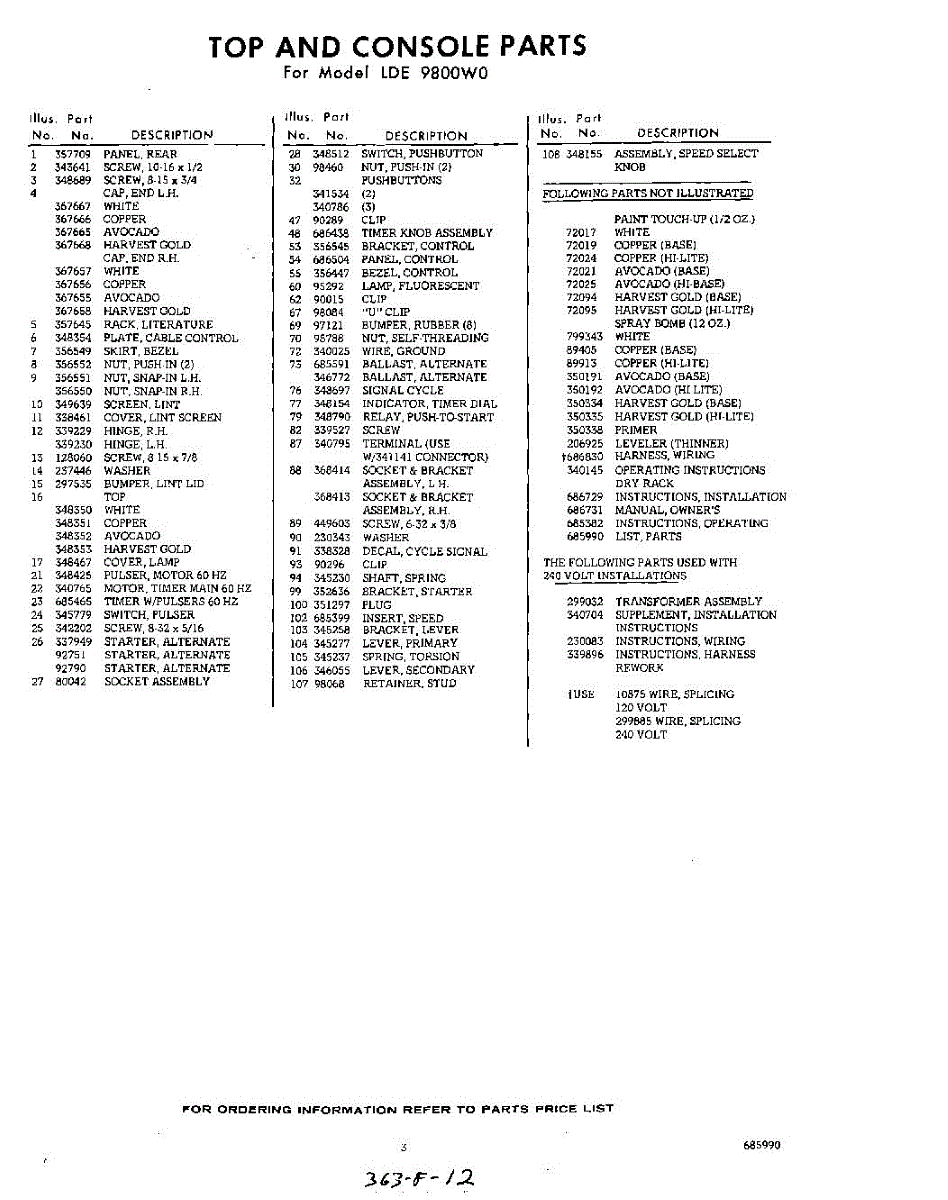 Parts for Whirlpool LDE9800W0: 03 - Lit / Optional Parts