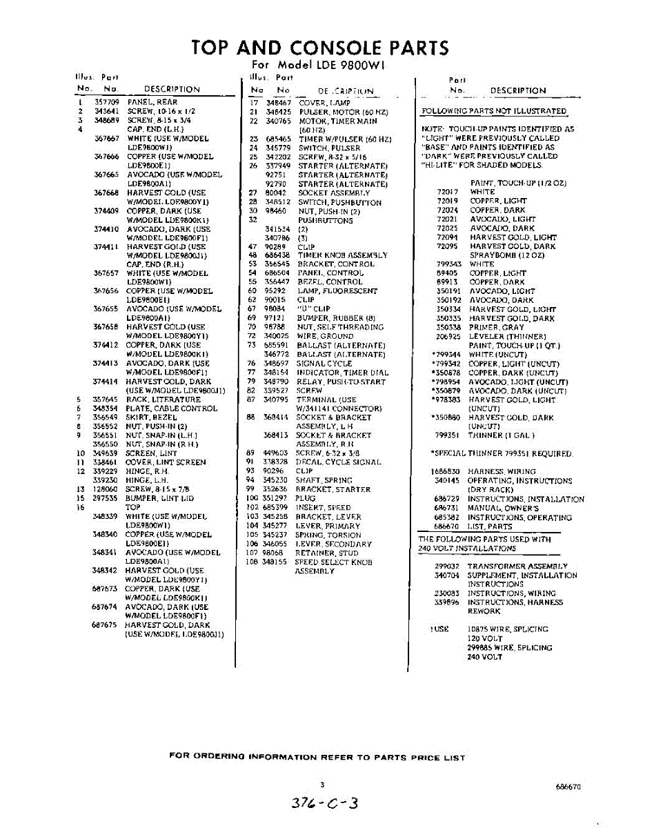 Parts for Whirlpool LDE9800W1: 03 - Lit / Optional Parts