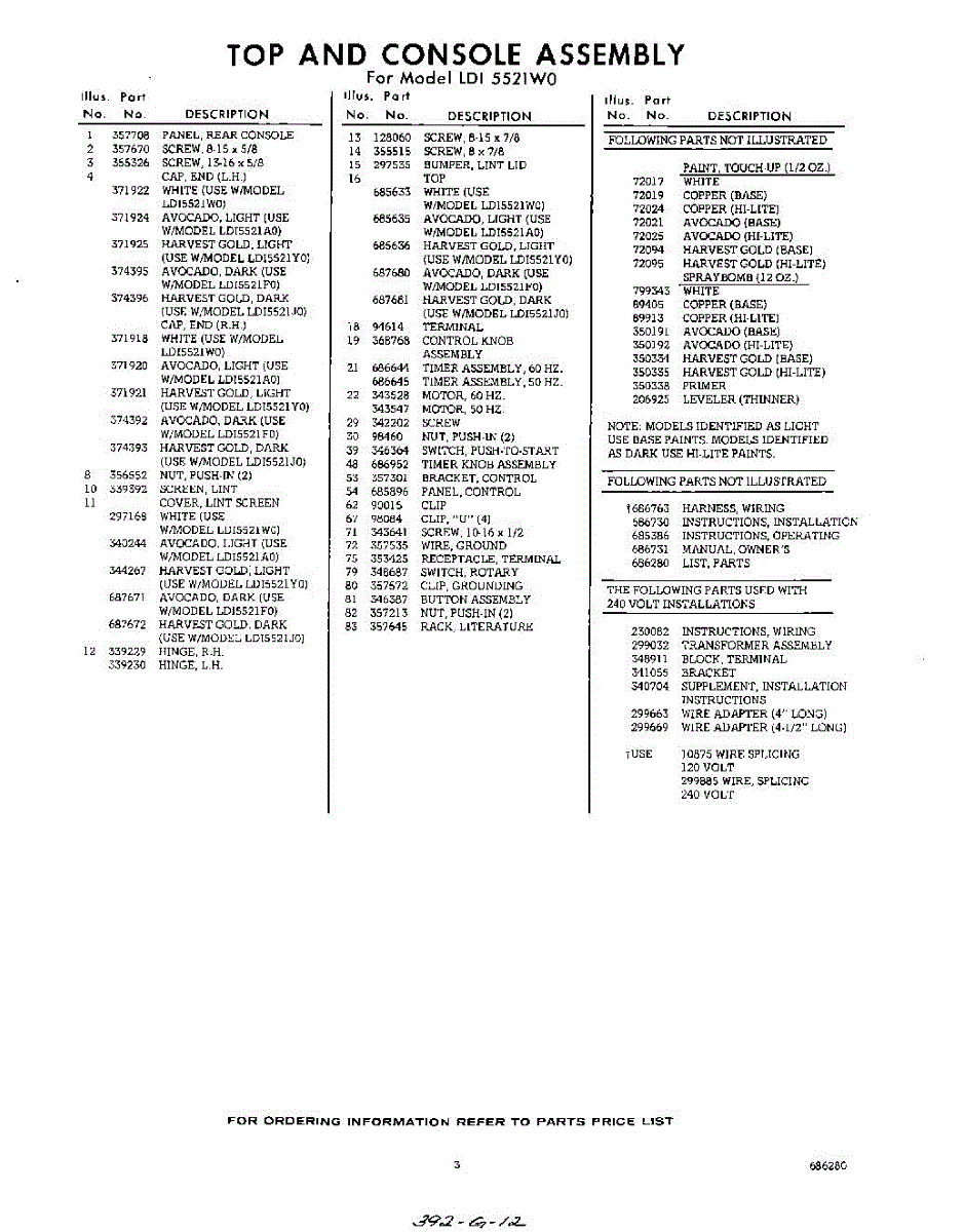 Parts for Whirlpool LDI5521W0: 03 - Lit / Optional Parts