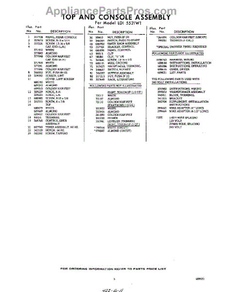 Parts for Whirlpool LDI5521W1: 03 - Lit / Optional Parts