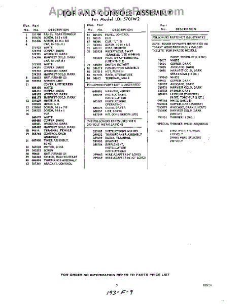 Parts for Whirlpool LDI5701W2: 03 - Lit / Optional Parts