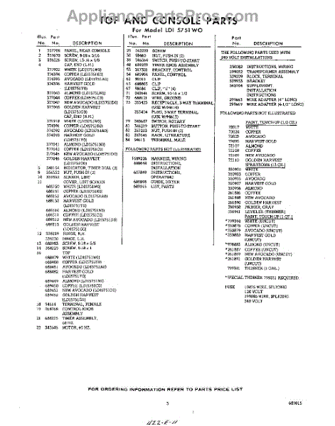 Parts for Whirlpool LDI5751W0: 03 - Lit / Optional Parts