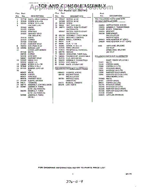 Parts for Whirlpool LDI5801W0: 03 - Lit / Optional Parts
