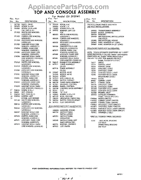 Parts for Whirlpool LDI5921W1: 03 - Lit / Optional Parts