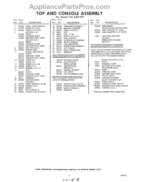Parts for Whirlpool LDI6401W0: 03 - Lit / Optional Parts