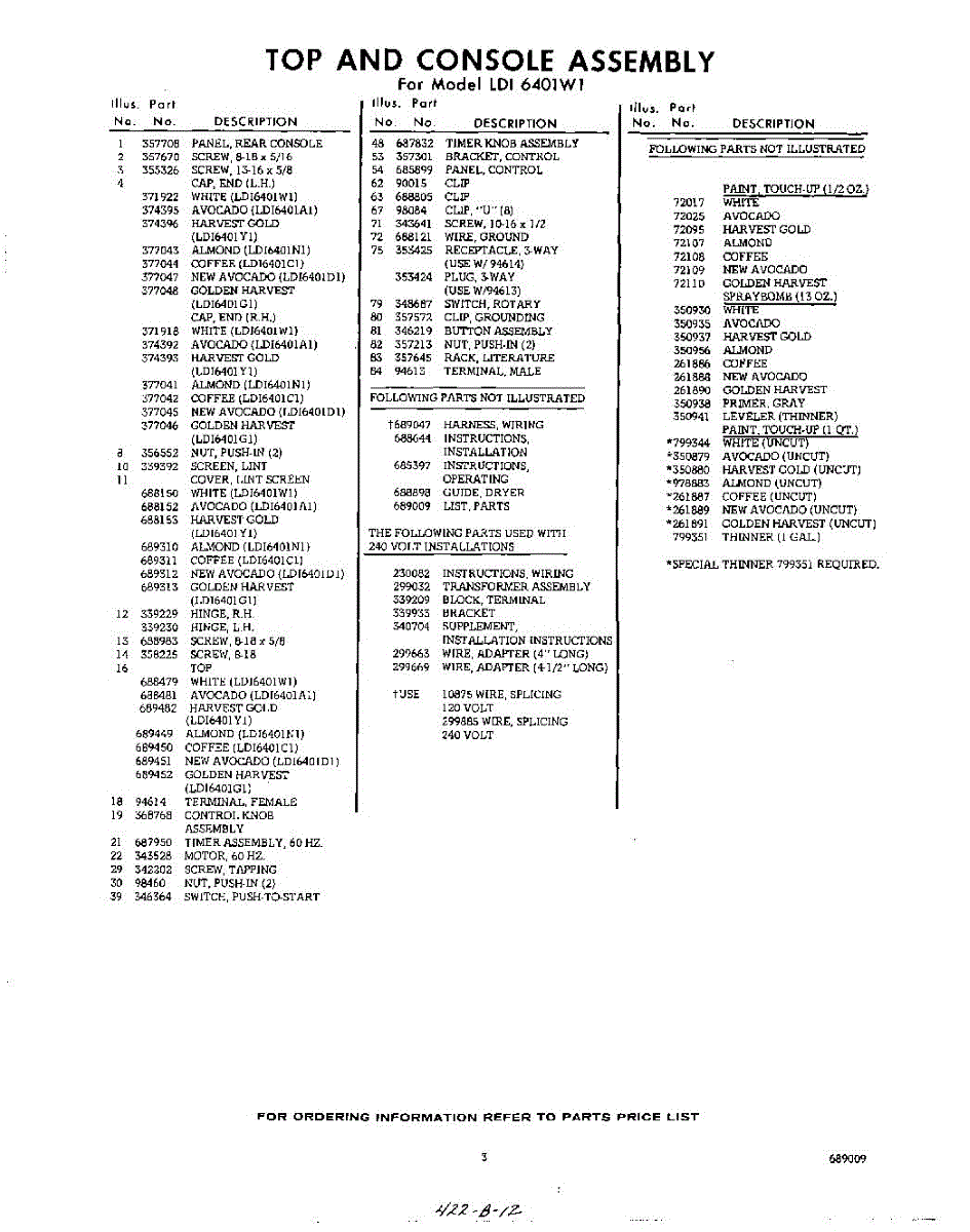 Parts for Whirlpool LDI6401W1: 03 - Lit / Optional Parts
