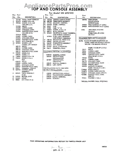 Parts for Whirlpool LDI6901W0: 03 - Lit / Optional Parts