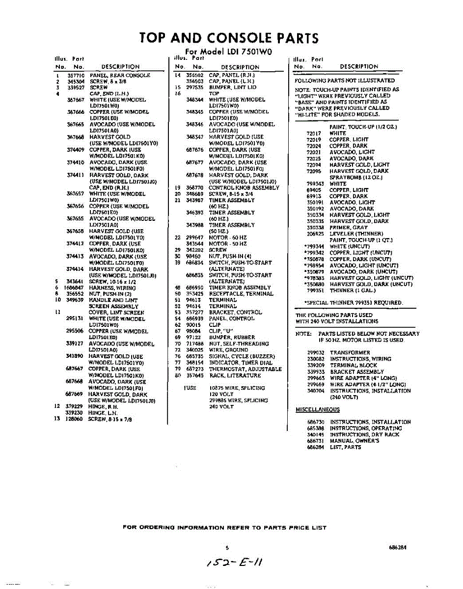 Parts for Whirlpool LDI7501W0: 05 - Lit / Optional Parts