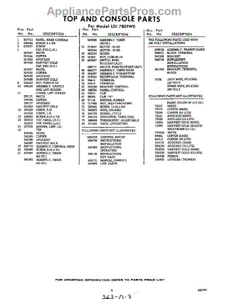 Parts for Whirlpool LDI7801W0: 03 - Lit / Optional Parts