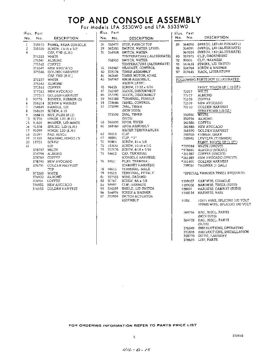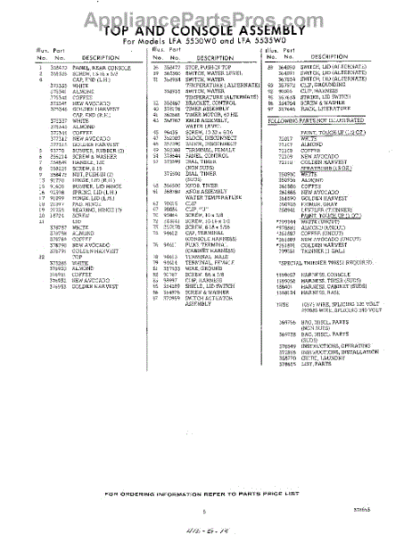 Parts for Whirlpool LFA5535W0: 05 - Lit / Optional Parts