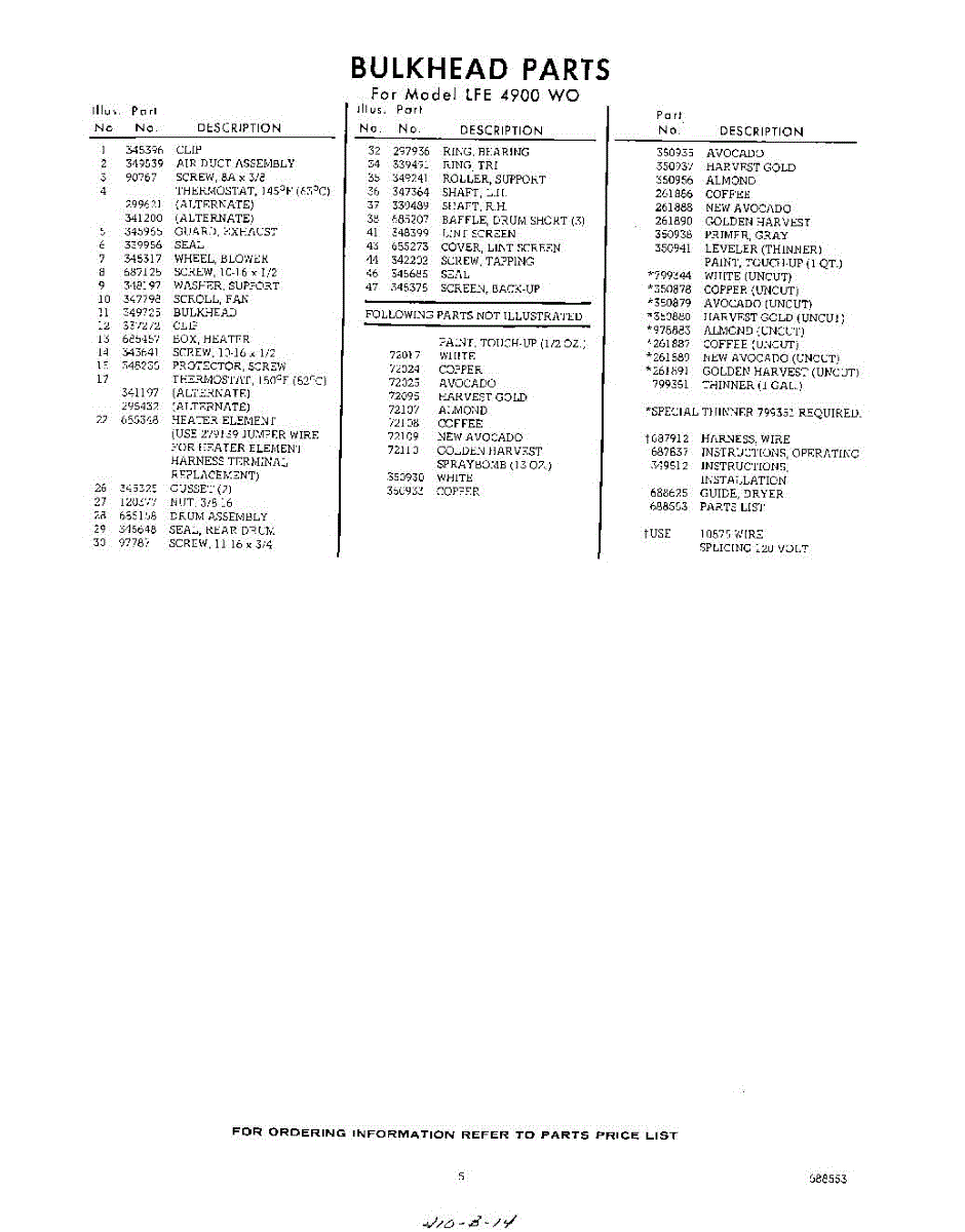 Parts for Whirlpool LFE4900W0: 05 - Lit / Optional Parts