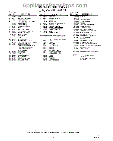 Parts for Whirlpool LFE4930W0: 05 - Lit / Optional Parts