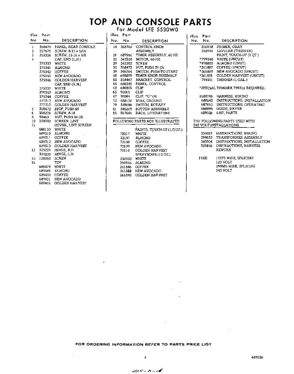 Parts for Whirlpool LFE5530W0: 05 - Lit / Optional Parts