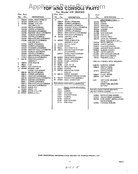 Parts for Whirlpool LFE5800W0: 05 - Lit / Optional Parts