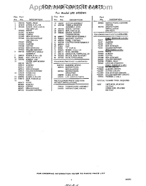 Parts for LFE6900W1