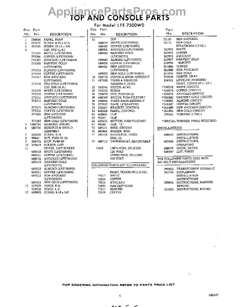 Parts for Whirlpool LFE7500W0: 05 - Lit / Optional Parts