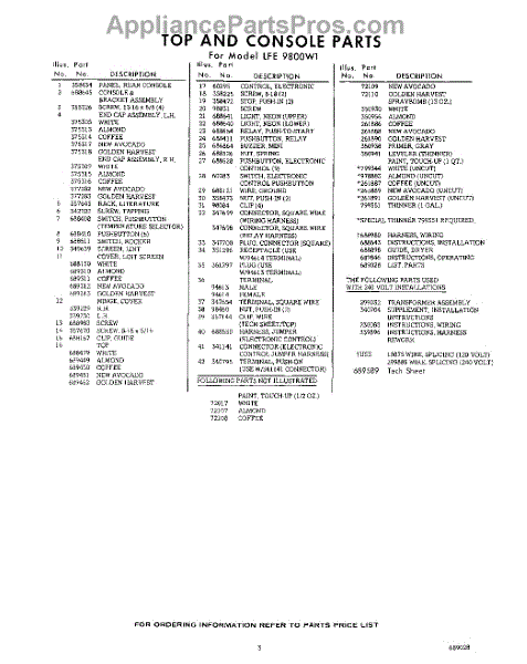 Parts for Whirlpool LFE9800W1: 03 - Lit / Optional Parts