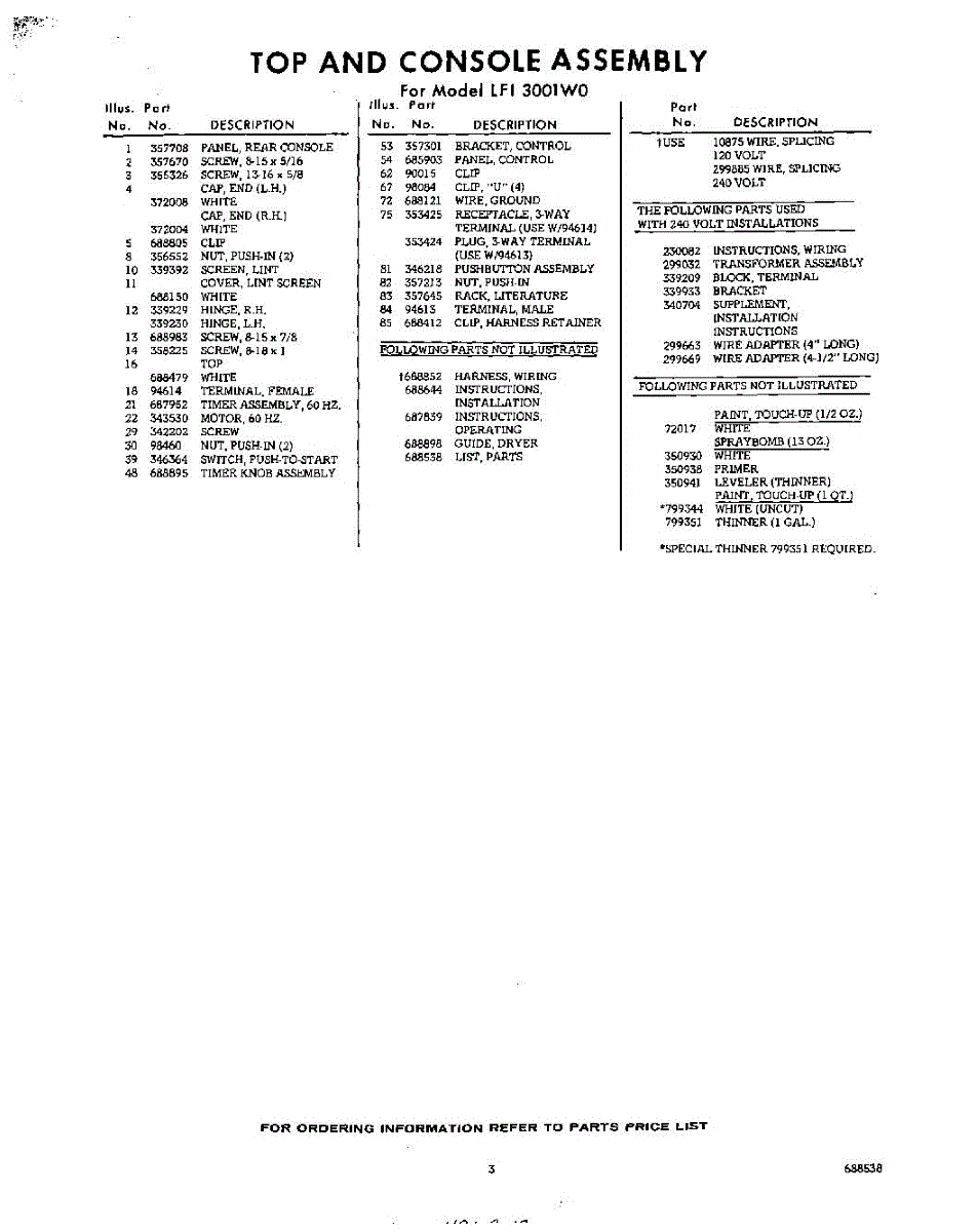 Parts for Whirlpool LFI3001W0: 03 - Lit / Optional Parts