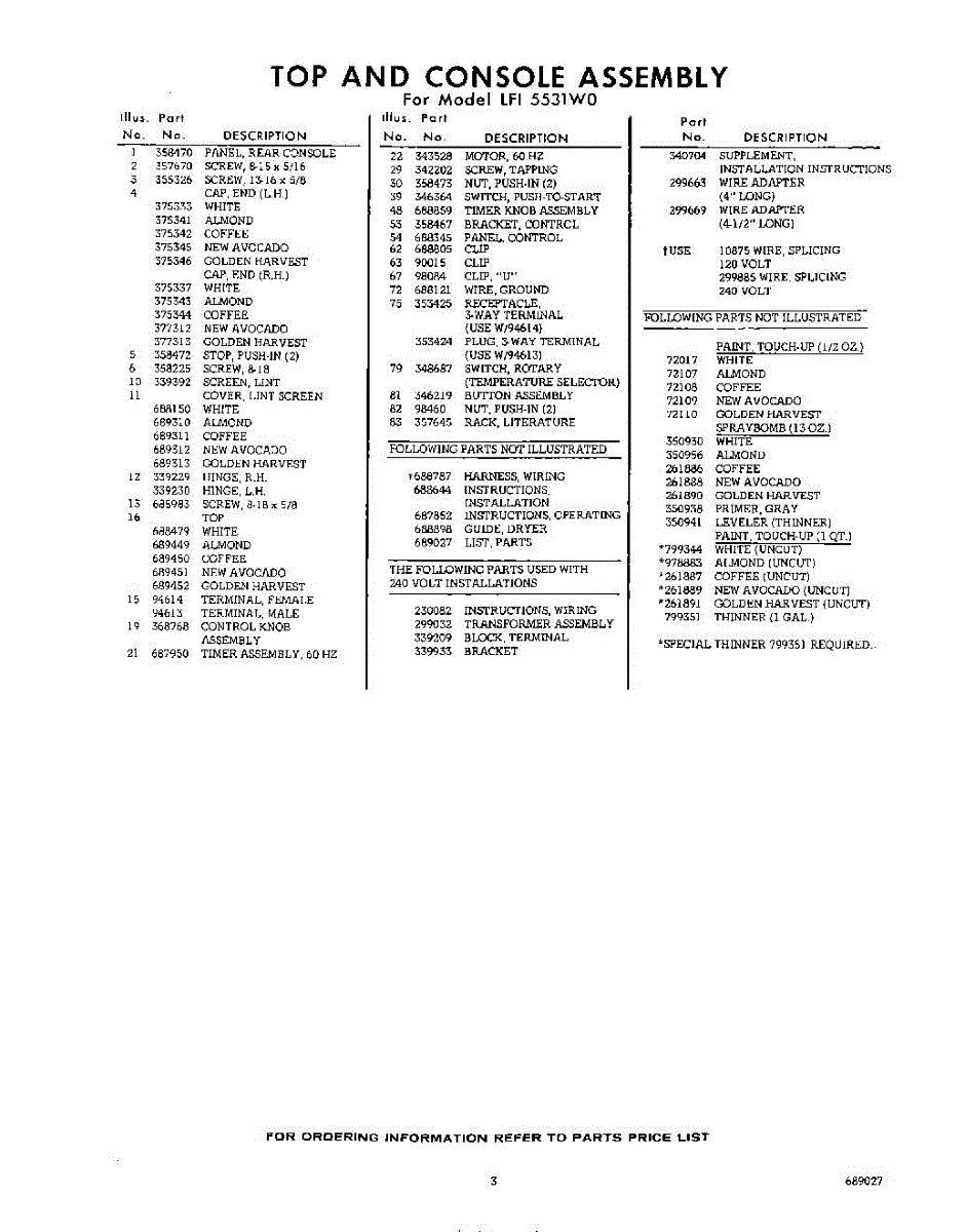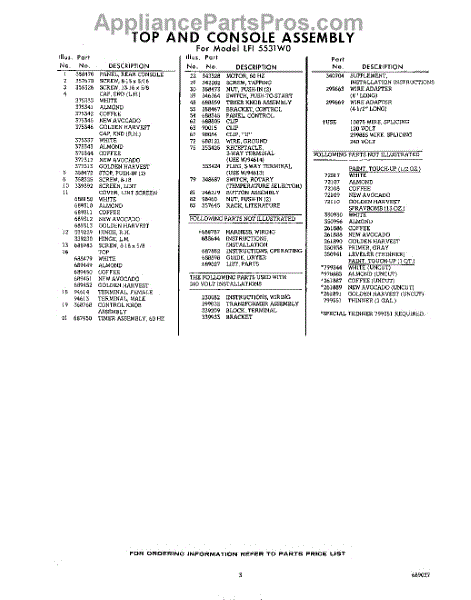 Parts for Whirlpool LFI5531W0: 03 - Lit / Optional Parts