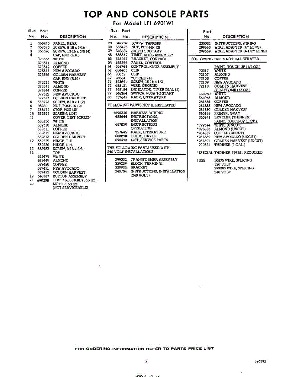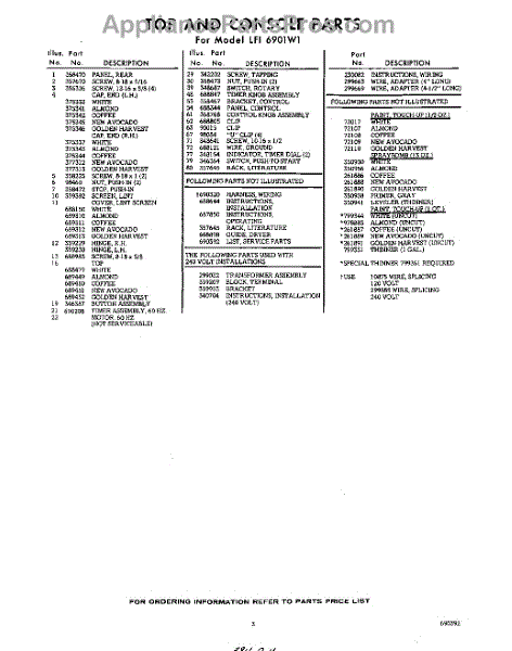 Parts for Whirlpool LFI6901W1: 03 - Lit / Optional Parts