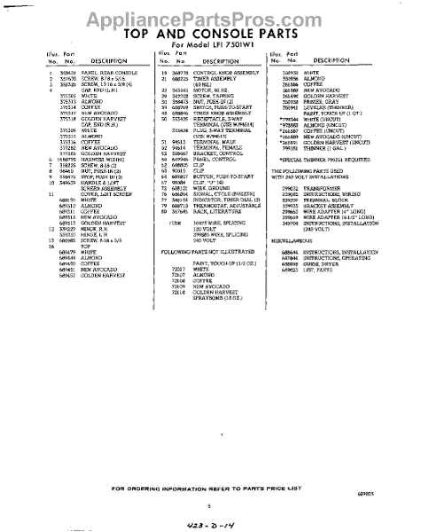 Parts for Whirlpool LFI7501W1: 05 - Lit / Optional Parts