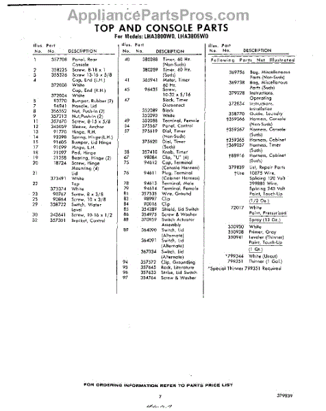 Parts for Whirlpool LHA3805W0: 07 - Lit / Optional Parts
