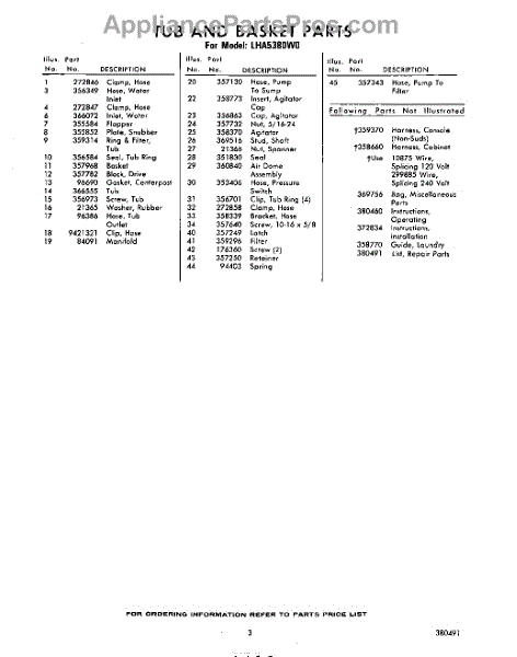 Parts for Whirlpool LHA5380W0: 03 - Lit / Optional Parts