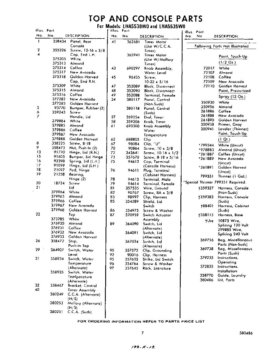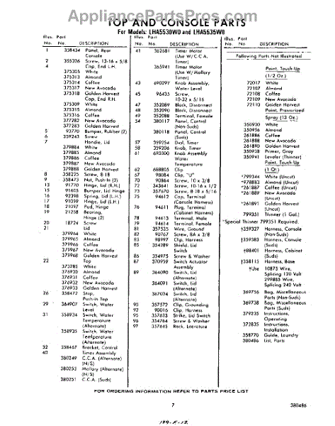 Parts for Whirlpool LHA5530W0: 07 - Lit / Optional Parts