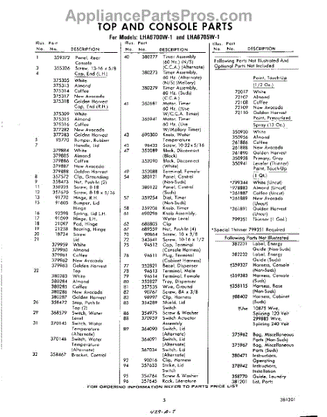 Parts for Whirlpool LHA6700W1: 05 - Lit / Optional Parts