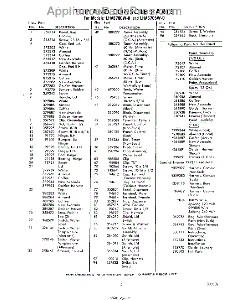 Parts for Whirlpool LHA6705W0: 05 - Lit / Optional Parts