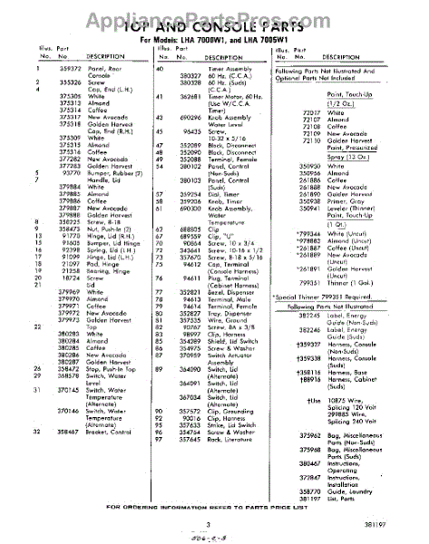 Parts for Whirlpool LHA7000W1: 03 - Lit / Optional Parts