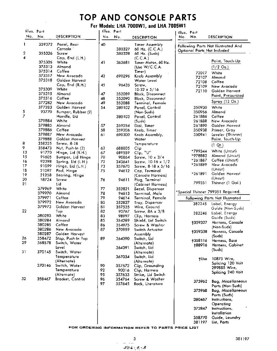 Parts for Whirlpool LHA7005W1: 03 - Lit / Optional Parts