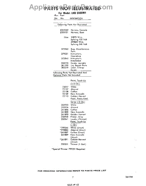 Parts for Whirlpool LHB5500W1: 07 - Lit / Optional Parts