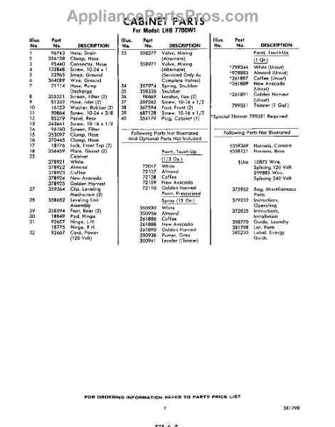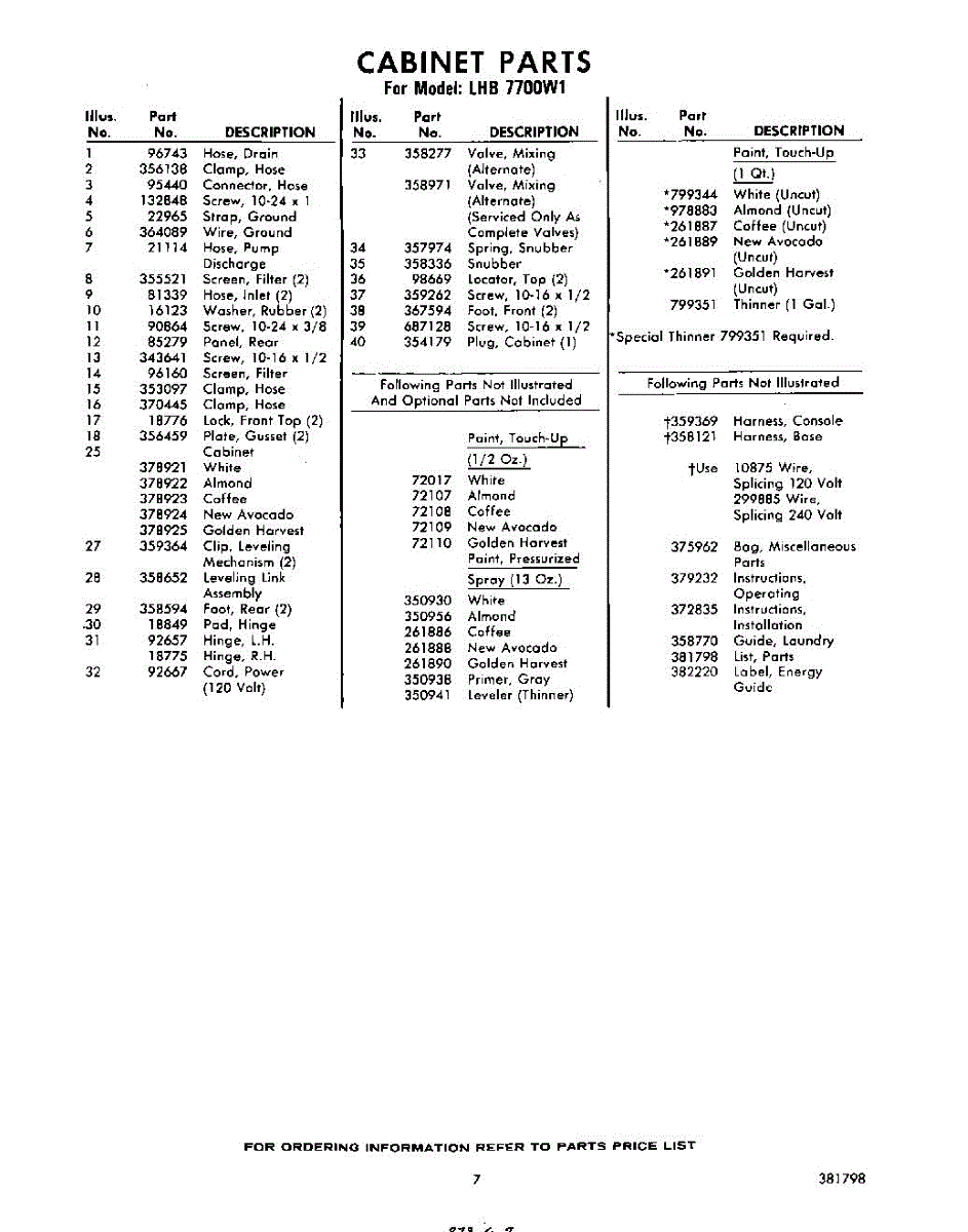 Parts for Whirlpool LHB7700W1: 07 - Lit / Optional Parts