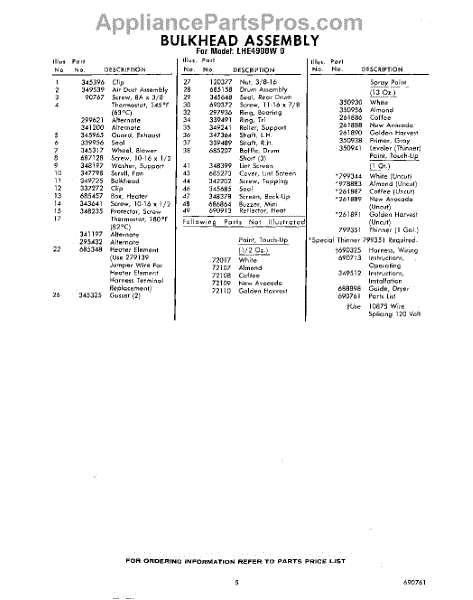 Parts for Whirlpool LHE4900W0: 05 - Lit / Optional Parts
