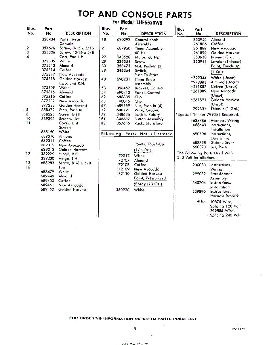 Parts for Whirlpool LHE5530W0: 05 - Lit / Optional Parts