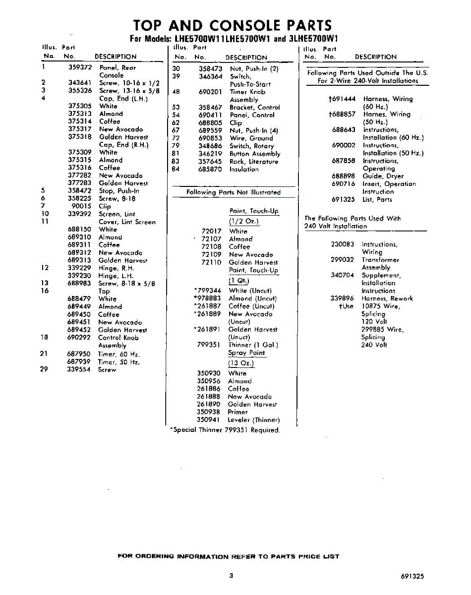Parts for Whirlpool LHE5700W1: 03 - Lit / Optional Parts