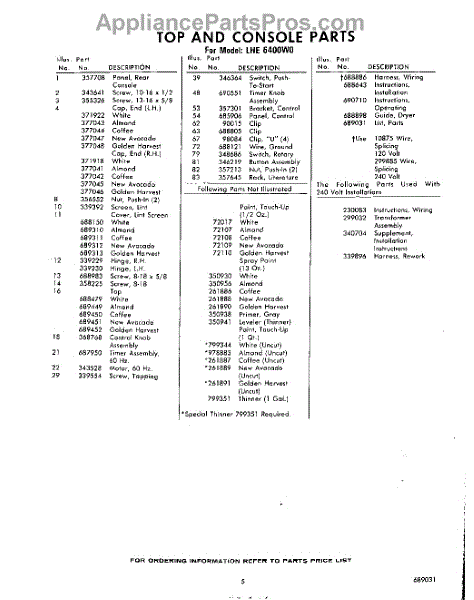 Parts for Whirlpool LHE6400W0: 05 - Lit / Optional Parts