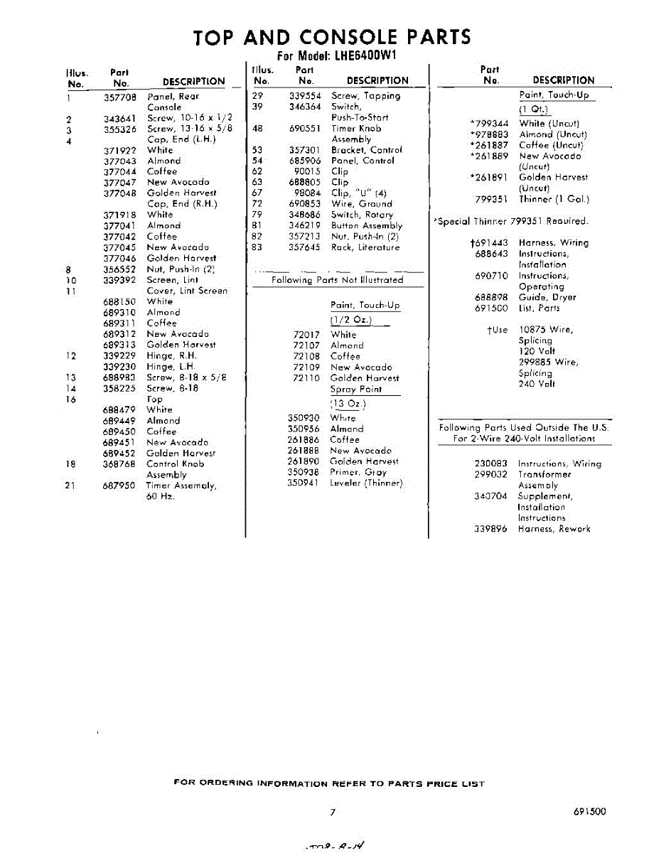 Parts for Whirlpool LHE6400W1: 07 - Lit / Optional Parts