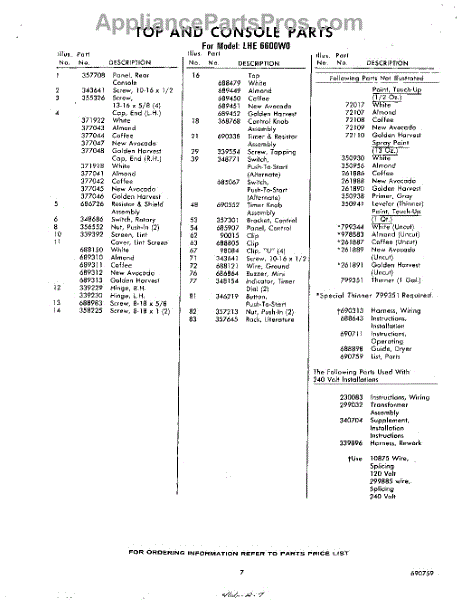Parts for Whirlpool LHE6600W0: 07 - Lit / Optional Parts