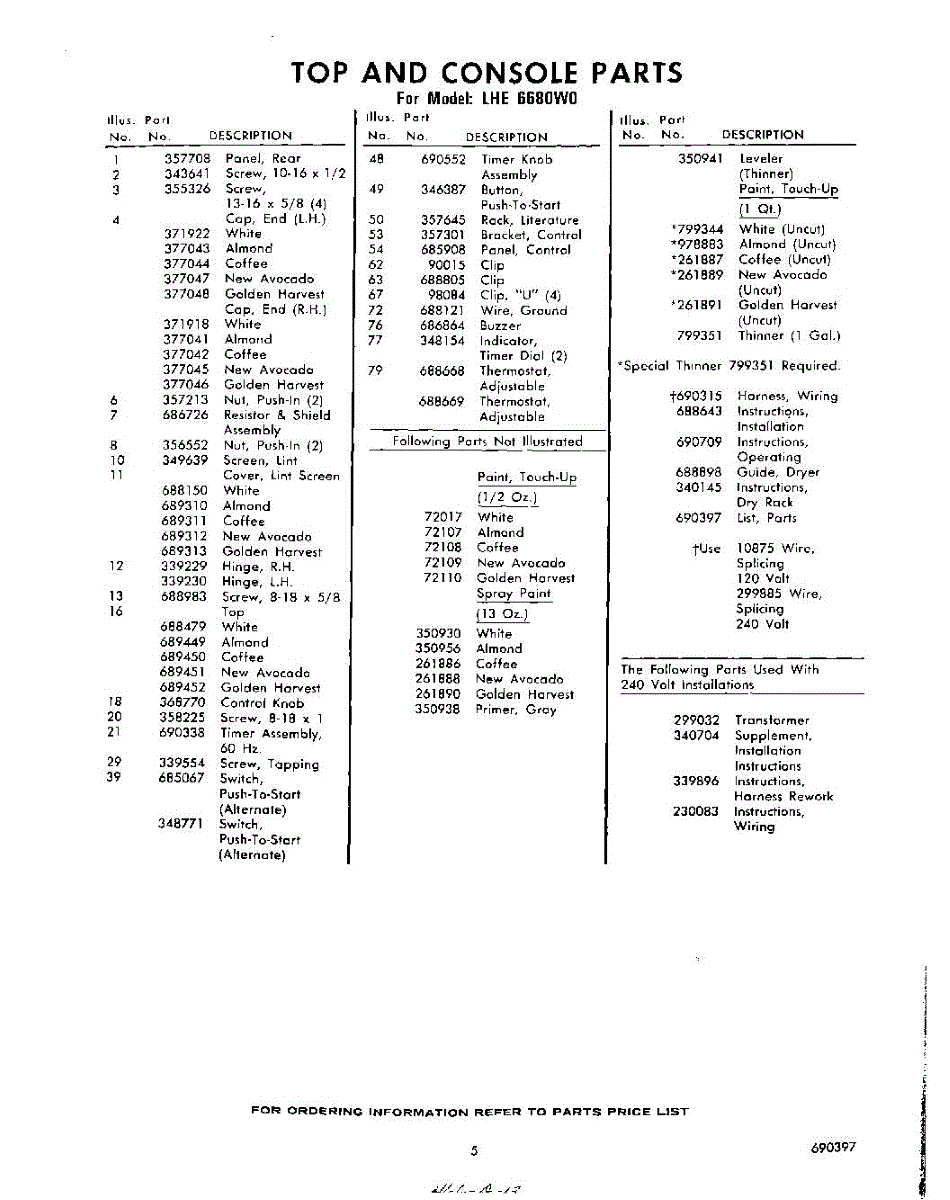 Parts for Whirlpool LHE6680W0: 05 - Lit / Optional Parts