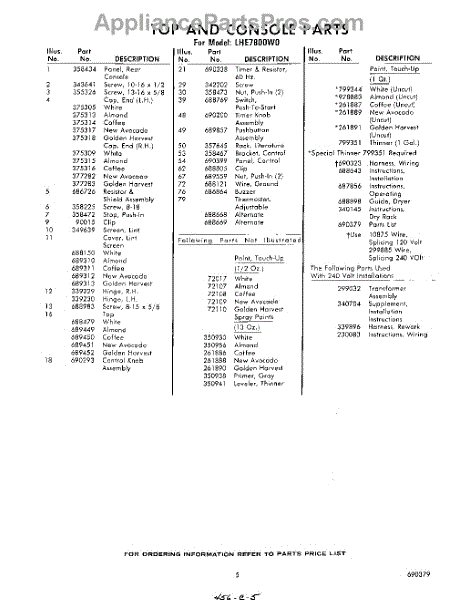 Parts for Whirlpool LHE7800W0: 05 - Lit / Optional Parts