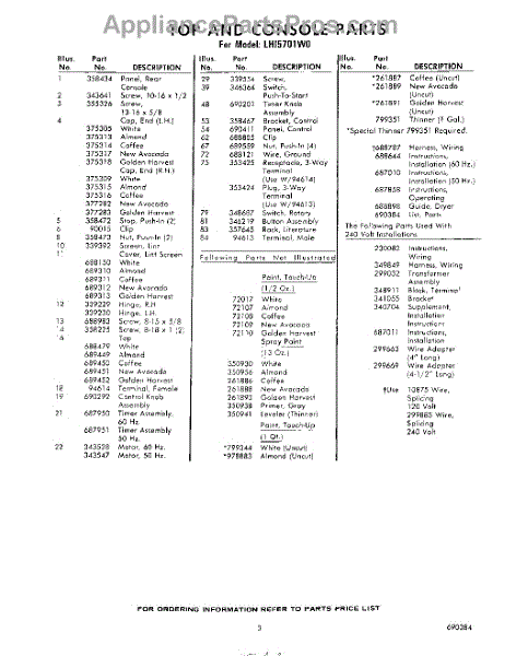 Parts for Whirlpool LHI5701W0: 03 - Lit / Optional Parts