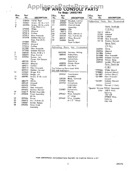 Parts for Whirlpool LHI5921W0: 03 - Lit / Optional Parts