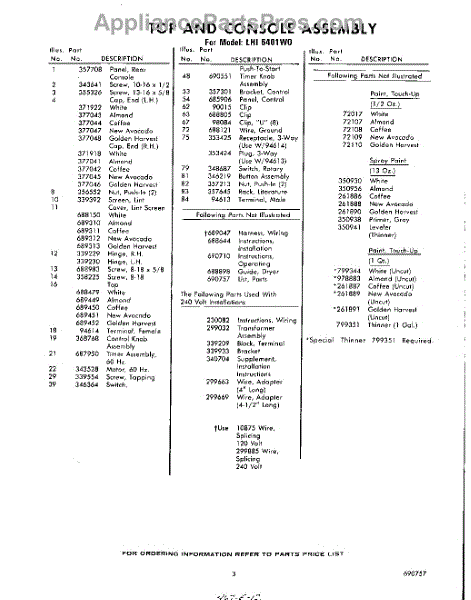 Parts for Whirlpool LHI6401W0: 03 - Lit / Optional Parts