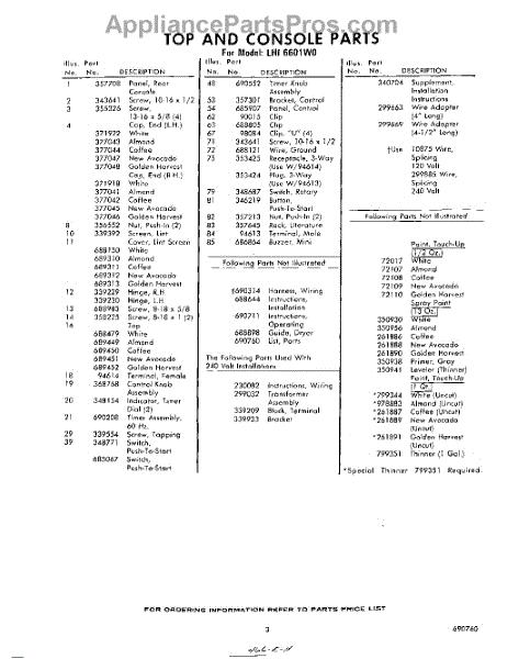 Parts for Whirlpool LHI6601W0: 03 - Lit / Optional Parts