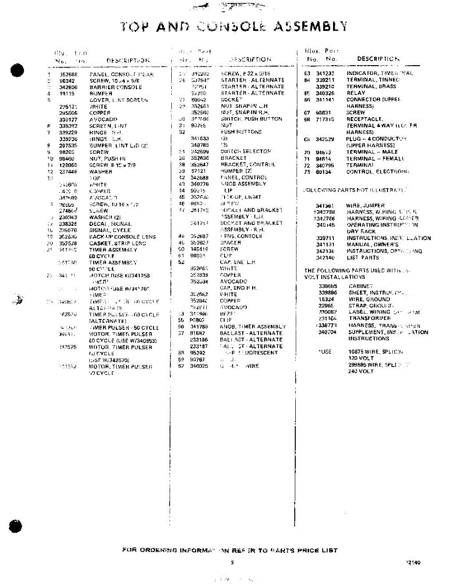 Parts for Whirlpool LVE8900W0: 05 - Lit / Optional Parts