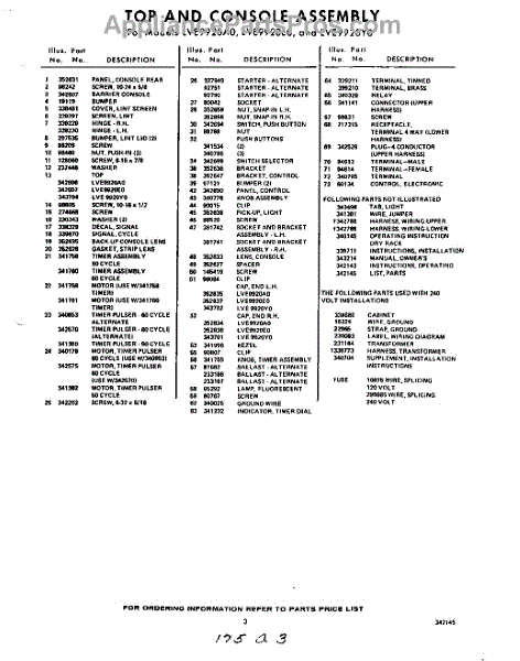 Parts for Whirlpool LVE9920Y0: 03 - Lit / Optional Parts
